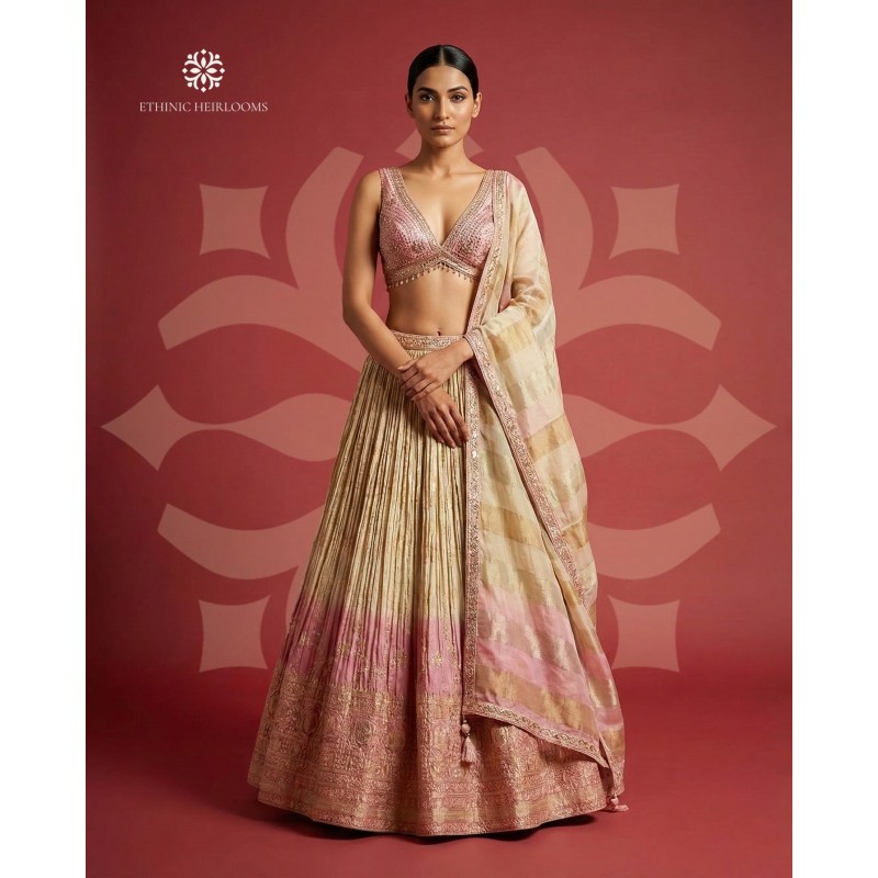 Product Code: pink+gold Lehenga